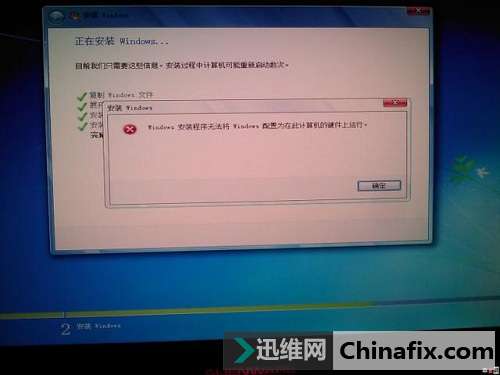 如果通過上面的方法安裝到最后一步,還是彈出“ Windows安裝程序無法將 Windows配置未在此計算機的硬件上運行。”的話,那么,就得用第二種方法了:修改注冊表。