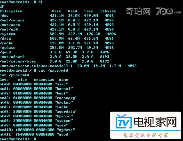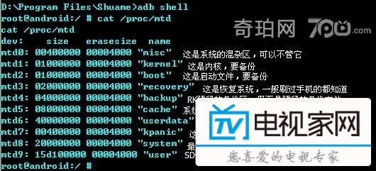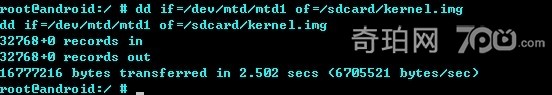 注意:of后面是存放的地方,首先要確保你的這個(gè)地方足夠大,不然放不下啦!!!!如果是原廠的系統(tǒng),最好把這里的/sdcard 改成/qvod 因?yàn)槲抑翱催^,這個(gè)分區(qū)好像有5.4G的空間,,而原廠長(zhǎng)的/sdcard 只有2G左右。。。