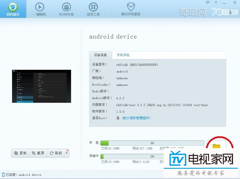 關(guān)于如何備份自己設(shè)備的安卓系統(tǒng),前提當(dāng)然是要有root權(quán)限了(不root,不android)關(guān)于快播小方的root教程,論壇有一堆,我就不寫了。