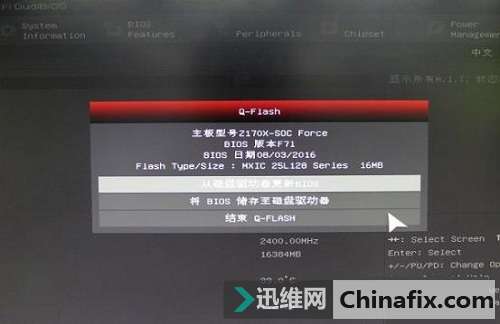 以技嘉Z170一款為例。首先進入BOIS找到Q-Flash,從磁盤驅動更新BOIS。