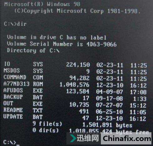 準備:下載FlashBoot,制作純DOS啟動盤。下載新BIOS,解壓到U盤內,從進入BIOS,從U盤啟動進入DOS,輸入Dir可查看U盤里的BIOS文件。