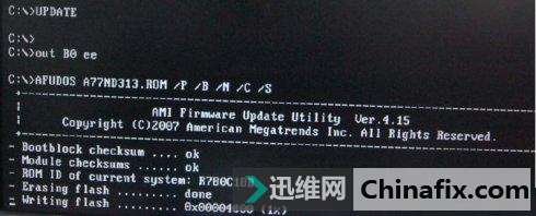 輸入UPDATE開始刷bios(刷BIOS過程中一定不能斷電,否則會失敗而開不了機)