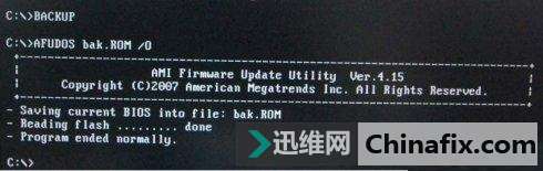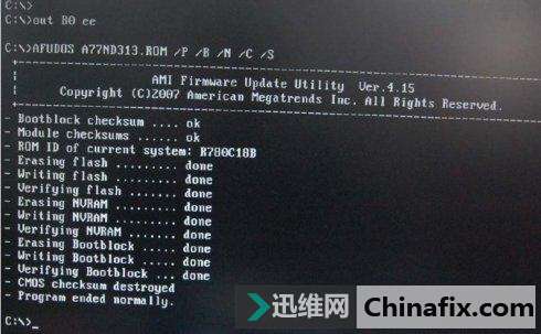 提示“Program ended normally”或者光標不在動時(注意觀察等待)表示刷新bios成功。