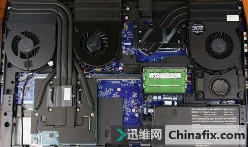 但是經常關注筆記本的朋友會發現筆記本風扇的直徑、厚度、齒數不盡相同,熱管的直徑、長度和彎曲度也都不相同,所以最終的效果也就是有區別的。下面我就給出一些當前主流以及高端游戲本的散熱模塊設計,讓我們來直觀的分析一下吧!