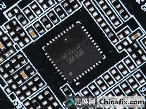 舉例來說,上圖是一顆比較高端的8相PWM芯片,我們熟悉的GTX 1080 Founders Edition便采用的這枚芯片,GTX 1080的供電相數(shù)為6相;但uP9511P完全可以控制顯卡上的16相供電,堆料王索泰就用其控制了GTX 1080 PGF上的16相供電,可見該芯片的素質(zhì)是非常過硬的。