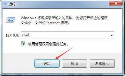 1、使用電腦快捷組合鍵Win+R打開快速運行,在運行窗口中輸入“cmd”命令點擊回車確定調(diào)出管理員命令提示符。