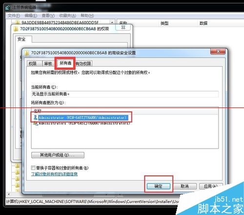 8、接下來進(jìn)行高級安全設(shè)置界面。進(jìn)入所有者界面,選擇你此時登錄的帳號,點(diǎn)擊確定,跳轉(zhuǎn)回前一級界面。