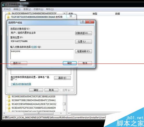 9、點(diǎn)擊“添加”,在最下面那個輸入對象名稱的文字框里輸入“everyone”,點(diǎn)擊確定。