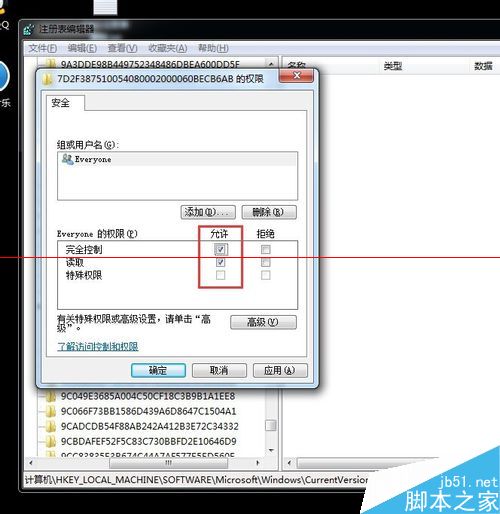 10、跳轉(zhuǎn)回前一界面,把完全控制和讀取兩項(xiàng)勾選允許,然后確定。