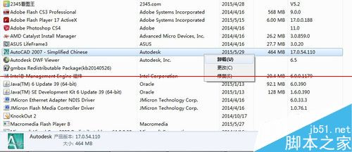 14、鑒于這里主要寫的是注冊表的刪除,所以對于CAD軟件本身的卸載問題就一筆帶過了,不管你是在系統(tǒng)控制版面的程序刪除里操作,或者利用軟件管家刪除,或者利用 windows installer clean up 軟件都行。