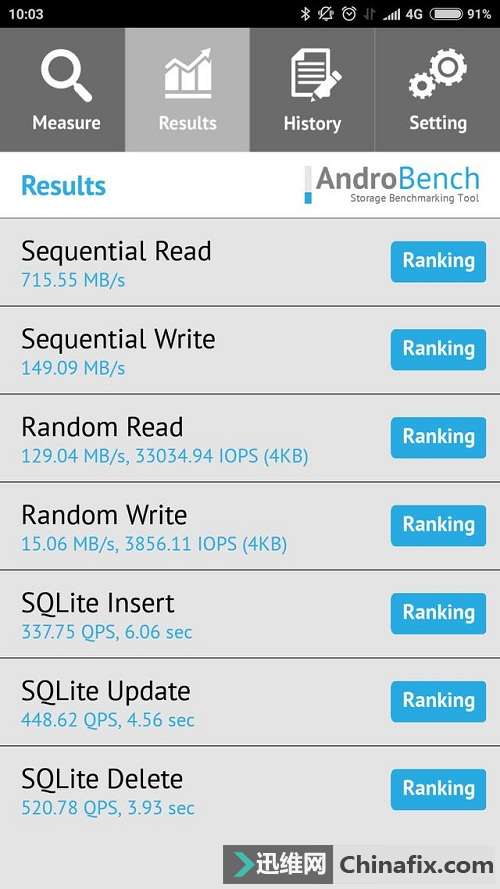那么eMMC使用F2FS,到底能不能獲得和UFS同等的性能?這里為大家提供一些測試數據,分別是eMMC 5.1、UFS 2.1兩種手機閃存,Ext4、F2FS兩種文件系統不同的組合。注意,除了手機閃存類型和文件系統,測試數據還會受到手機閃存顆粒優劣、加密算法是否開啟、測試時閃存是否覆蓋寫入等因素的影響,數據僅供參考。