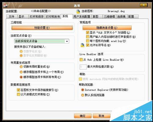 1、先打開CAD軟件,輸入OP,空格,打開系統-性能設置。