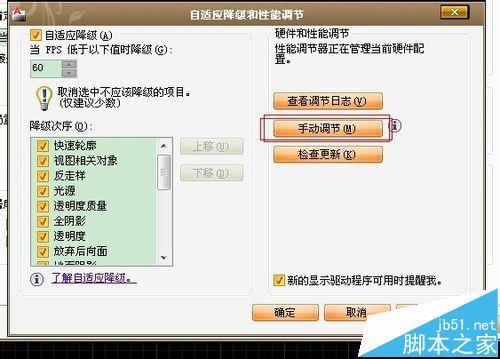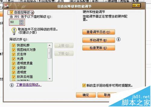 2、將自適應降級勾選。 當FPS低于60時降級(FPS默認值是5)。
