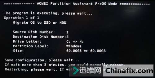 點擊軟件左上角的執行按鈕,會彈出重啟進入ProOS模式的提醒,同意后筆記本會重啟進入類似DOS的界面,此時請耐心等待,出現遷徙成功的提示后會自動重啟。