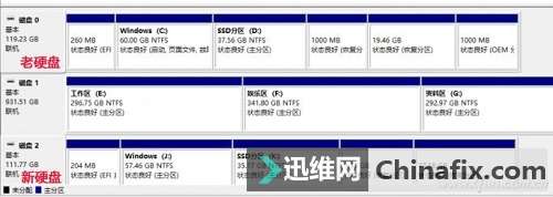此時SSD的分區數量和里面的數據和老硬盤一模一樣,只是各分區的容量會根據SSD的實際容量出現變化。