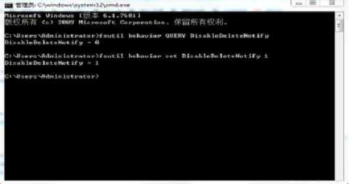 如果你剛查詢了TRIM狀態,你可以按方向鍵,按向上,出現剛查詢時輸入的命令,然后把query改成set,Disabledeletenotify后空格再加上0。fsutil behavior set disabledeletenotify 0。