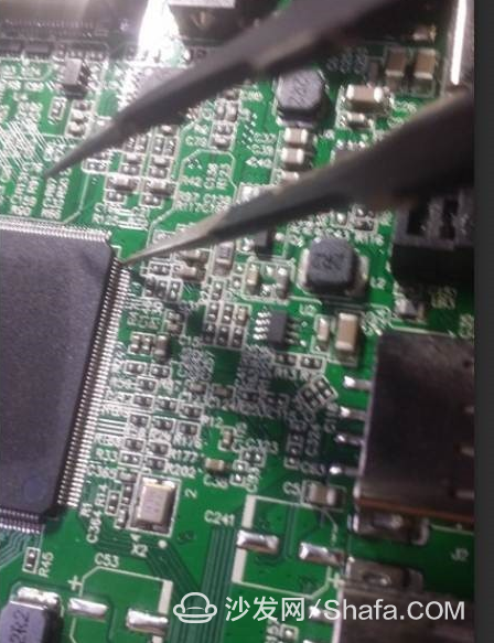 第五步:短接好以后,千萬別松開針啊,現在打開電源,看電視屏幕,等待大約15~30秒鐘,出現綠色機器人后,松開針就可以了,看下圖。