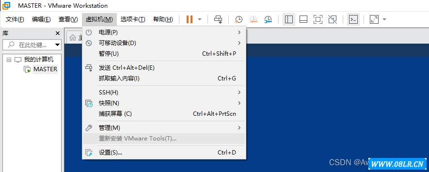 這是因為虛擬機沒有安裝和啟用VMware tools,或者VMware tools是灰色無法安裝。如下圖