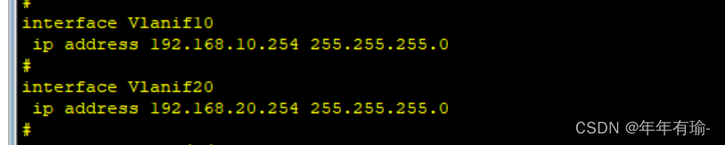 進入vlan虛擬接口,配置相應的地址(地址為pc的網關,虛擬子接口編號為已創建的vlan編號)