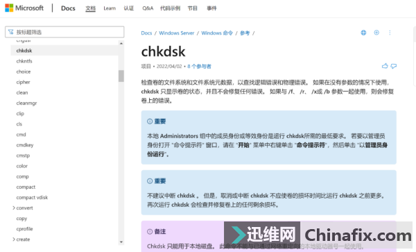 要查看所有與檢查磁盤實用程序一起使用的命令提示符參數選項,請訪問鏈接,訪問Microsoft的說明參考。https://docs.microsoft.com/zh-cn/windows-server/administration/windows-commands/chkdsk