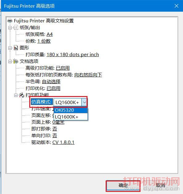 3.找到仿真模式,默認是LQ1600K+,點擊后選擇OKI5320,然后點確定。
