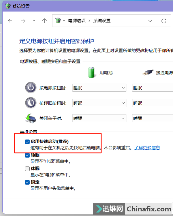 5、就能看見畫面中出現【使用快速啟動】選項,我們在后面取消勾選即可。