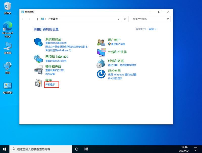 1、出現這個原因可能是某個windows10系統補丁更新,導致的問題。打開桌面的控制面板,點擊卸載程序。