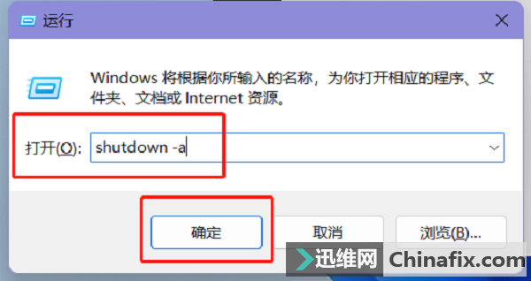 4、如果要取消Win11的自動關機,同樣也是在運行窗口中操作,我們輸入【shutdown -a】命令,按下回車或點擊確定,就可以取消自動關機。