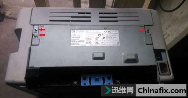 把打印機翻轉,拆掉紅色箭頭處的3個螺絲。