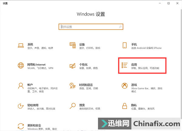 【win+i】打開(kāi)“Windows設(shè)置”,接著點(diǎn)擊【應(yīng)用】。