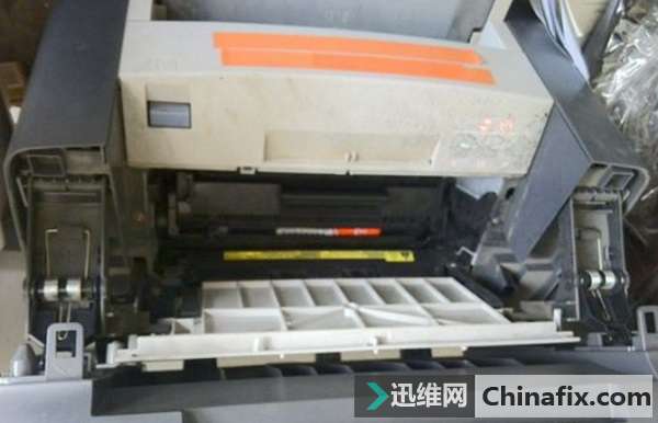 2、打開以后取出碳粉盒、看圖、就是打印機(jī)里面那個黑色的東西。