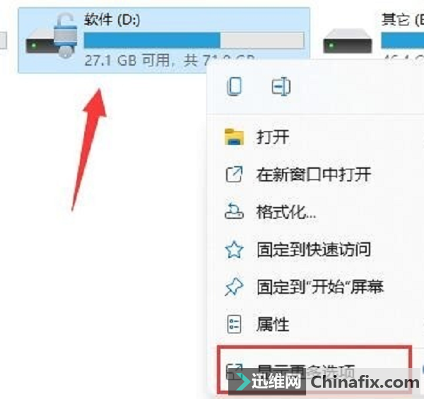 1.用戶雙擊打開電腦桌面上的此電腦圖標,接著進入到此電腦窗口中,需要用戶找到并右鍵選中被加密的硬盤,將會彈出右鍵選項卡,用戶點擊其中的顯示更多選項,