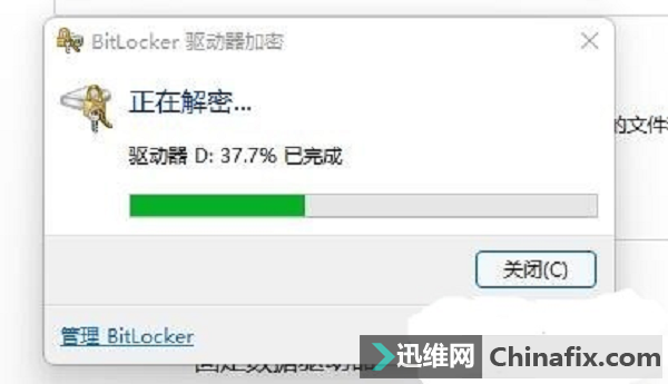 5.此時用戶可以看到彈出來的進度條,耐心等待進度條走完即可解除硬盤加密了。