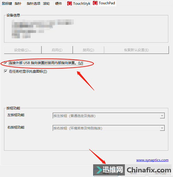 5、最后勾選“插入外置usb指向裝置時禁用”,再點擊“確定”即可。