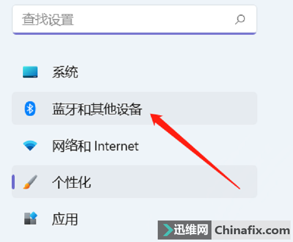 2、打開任務欄設置后,在左側找到“藍牙和其他設備”。