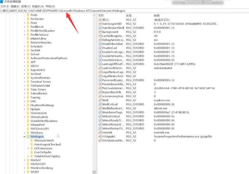 依次點擊展開HKEY_Local_MACHINE\Software\Microsoft\Windows NT\CurrentVersion\Winlogon