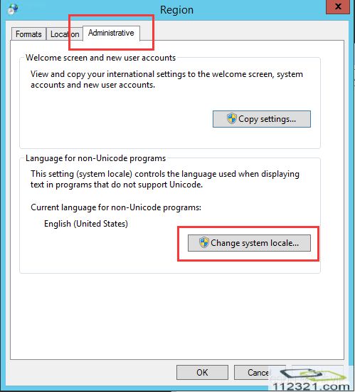 選擇管理(Administration)點擊更改系統區域設置(change system locale)