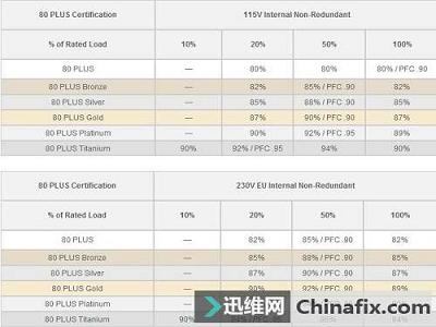 各級80Plus認證的相關要求,僅僅是看轉換效率以及PF值的高低