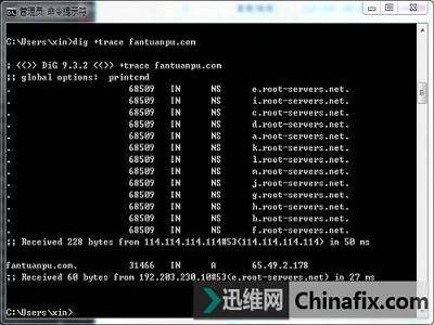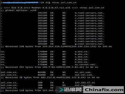 3、DNS根服務器給出范圍:該域名由.com.cn區域管理,給你.com.cn域服務器地址ns.cernet.net.